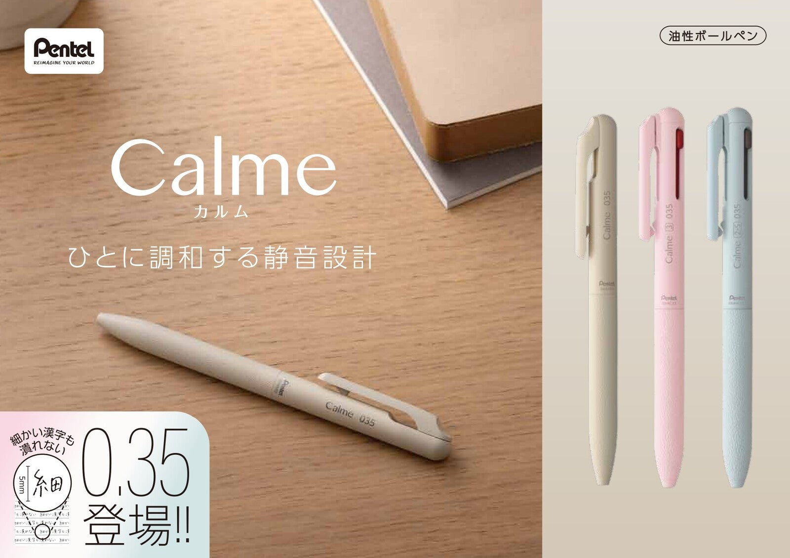 Długopisy żelowe Pentel Calme dostępne są w trzech kolorach: błękitnym, różowym i kremowym. Gumka pokrywająca nasadę długopisy umożliwia pewny chwyt, a tusz pentel zapewnia gładkie pisanie. Czarny, szybkoschnący tusz i cienka końcówka 0.35mm sprawiają, że każda linia jest precyzyjna i elegancka.