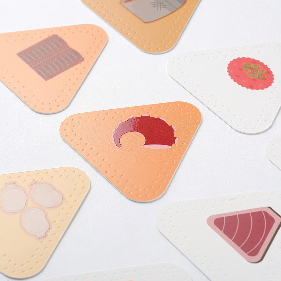 - 12 ilustracji przedstawiających różne rodzaje onigiri