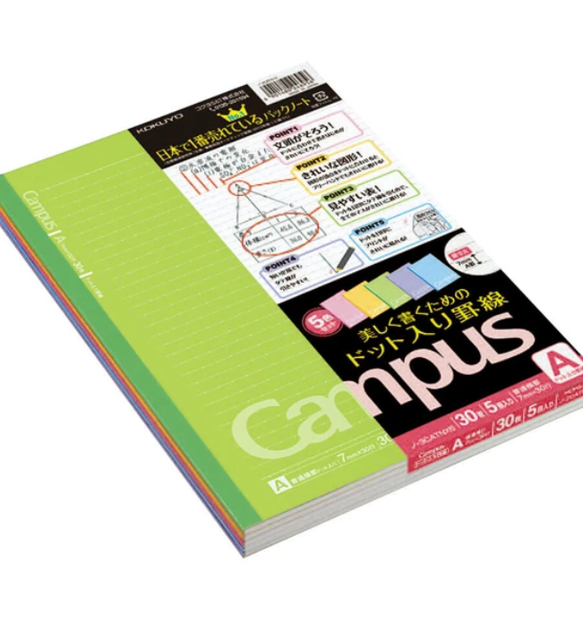 Klasyka japońskiej papeterii w najlepszym wydaniu! Zestaw 5 zeszytów Kokuyo Campus w formacie B5 to niezawodne narzędzie do nauki, pracy i codziennych notatek. Każdy zeszyt posiada wyraźną, 7-milimetrową linię, która ułatwia estetyczne i czytelne pisanie.