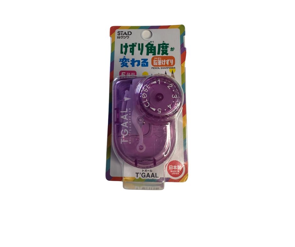 Innowacyjna temperówka T’GAAL z pokrętłem regulującym kąt ostrzenia w 5 poziomach, pozwalająca dopasować stopień zaostrzenia do różnych rodzajów ołówków i kredek.